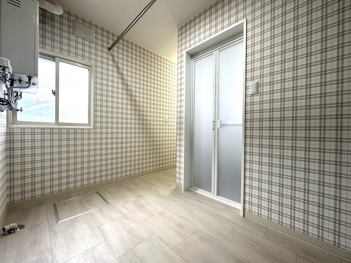 玄関タイルは既存のままで予算を抑えつつ、クロスやフローリングを交換したことで、玄関の印象がナチュラルで明るくなりました。